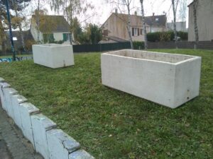 Avec des belles jardinières offertes par la ville qui attendent vos futures plantations!!